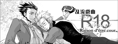 全然関係ないんですけど、既にお気づきかとは思いますが、私ダブルパロするのが好きなので、でも主体は逆裁なので、今回もまたそんな感じのペーパーになってるかと思います。前はホラ、ゴドナルミツでレイトンとかゴドナルロウシナでドラクエとか、だから今回はもうアレですな。アレです。主体SSは原作設定以外は読むのも書くのも全然だったりするのにねえ。妙な話である。