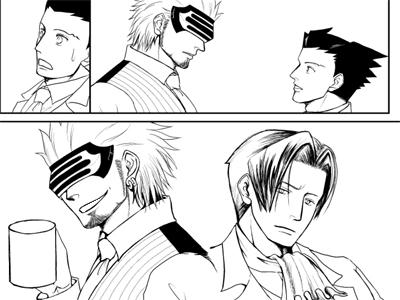 この表紙の馬鹿っぷりに自分達で大ウケしつつ、ほんと表紙で出オチみたいな本です。背景等は桂さんです、私じゃないよ!桂さんは本当に馬鹿だな!(褒めてる) そのような訳で裁き新刊の表紙です\(<三>)/見て判るかと思いますが、ミッタンが桂さん、ゴドーさんが私、なるほどくんがヒデローちゃん絵です。背景は桂さんです。2度目まして。箔押しする予定です、桂さんは本当に馬鹿だなあ!この本は桂さんとの合同誌なのですが、ヒデローちゃんをスペシャルゲストでお迎えしており、剰え表紙も描いてくれとゴリ押ししました、友達特権やっほい!二人とも最近ますます絵巧くなってない?ずるい! 下の記事の漫画はこの本のヤツです。正直、こんなヤバイ状況未だ嘗て無いほどなんで、つうか私漫画の時間配分が未だに判らないので凄い怖い!凄い怖いよどうしよう!合同誌で落とすとか絶対あり得ないんで意地でも間に合わせますがこわい。だったらブログ書いてる場合じゃないだろうですよね、わかります。休憩してるんだ休憩。漫画が間に合ったとしても文章までイケるかなあ。書きたいなあ。内容はゴドナルミツですが、カプ要素は薄いです。三人でワイワイしてる感じのギャグ本です。カプ要素は薄い、と云っておいてゴドナルミツではあるので、何と云うかゴドさんもミッタンも成歩堂が好き!みたいな女性向け本ではあります。 今日はツレの誕生日なので、前夜祭と云うことで土曜日は焼肉食って来ました。焼肉食ってウハウハしてる場合じゃない(また此処に帰結する)一寸色々事情があって、ツレの生活時間帯がまた私と同じ稼動になるらしいので、しかしそうであるなら却って私は自分の時間が取れるようになるので、微妙に安心してるとこもあります原稿的に。もしこのまま行くなら、最近めっきり滞ってるオンの方ももう少し動かせると思います。ウイルスにビビりながら更新します。あと前々から云ってますが、今年はワンピもやってるので、どうしても全部動かすと云うのは無理なんですが、京極の方もスパコミではプチオンリー発行のアンソロに参加させて頂きますし、自スペは一日目の逆裁参加で、夏コミはワンピ(落ちても大阪インテにワンピで参加するのでどっちにしろ夏合わせ)で、そんな感じで動いてます。オフは多分、今年はスパコミ後からはワンピメインになるかと思いますが、裁きには参加したいです。そのような訳で、今後も宜しくお願いします。ってか、あと二日でWiiの逆裁3が出るよねウワーーーーーーッ!!!愉しみ過ぎる大画面でゴドーさんと握手しる!